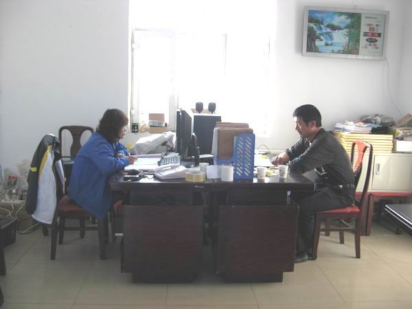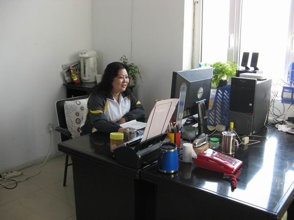 新疆天羽赛鸽公棚电脑员张红(左一)与总教练杨虎(右一)
