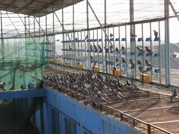 新疆乌鲁木齐天羽赛鸽公棚—位于乌鲁木齐市头屯河区八钢开发区占地面积14000平方,鸽舍面积1100平方,晒笼(活动棚)面积1100平方,办公室、值班室等面积1100平方,饲料间、库房等面积1100平方。配有完备的公棚软、硬件设施,有专业饲养、兽医、训放的技术人员,做到科学管理、精心训养、公平竞赛、真诚服务。公棚宗旨:“以质量求生存、以信誉求发展”。2008年成功举办首届大奖赛,训放50km后清棚时存棚率达到90.1%(3882羽/4307羽),在新疆首屈一指。