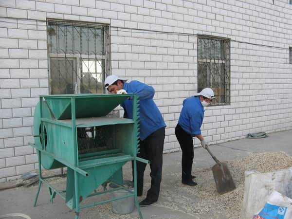 新疆天羽赛鸽公棚工作人员在加工饲料