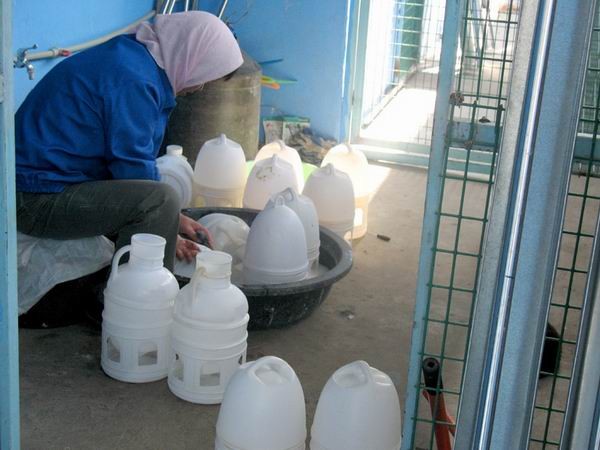 新疆天羽赛鸽公棚工作人员在清洗用具