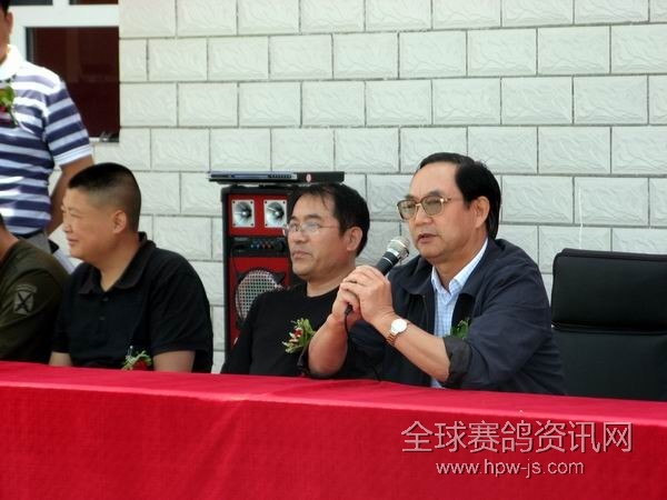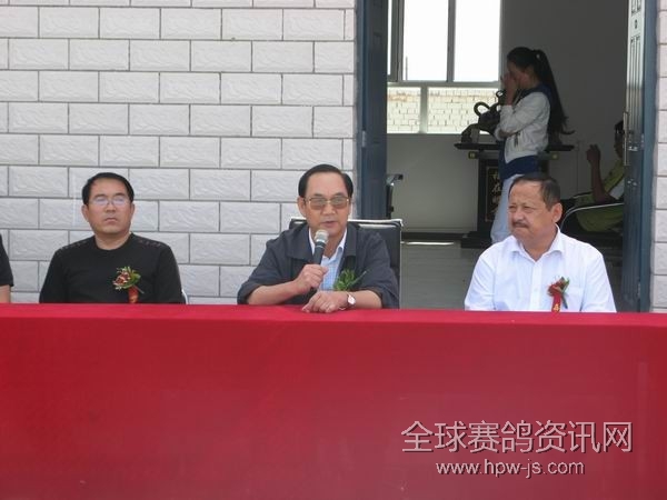 新疆信鸽协会马主席(图左二)在开业典礼上讲话