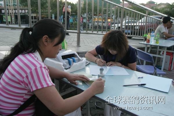 乌鲁木齐勇翔赛鸽俱乐部现场,认真的按程序操作-加盖暗码章