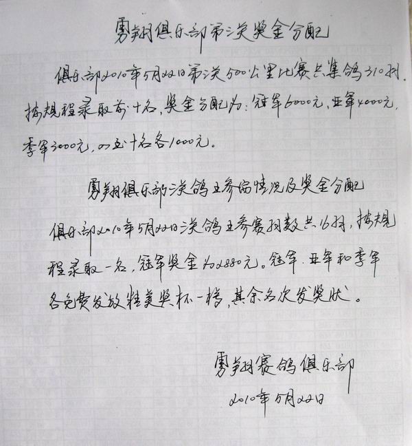 乌市勇翔俱乐部第三关奖金分配