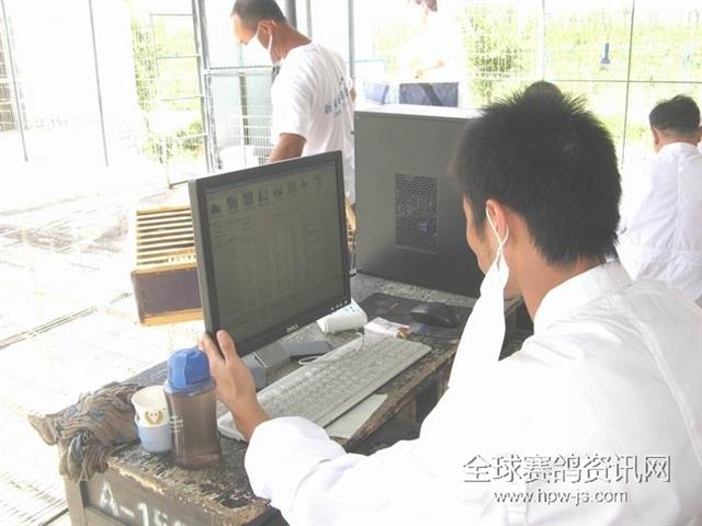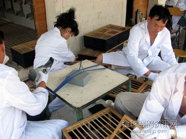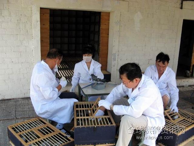 新疆天宝赛鸽公棚美景—裁判们在忙碌的核对“运动员”们的足环号码