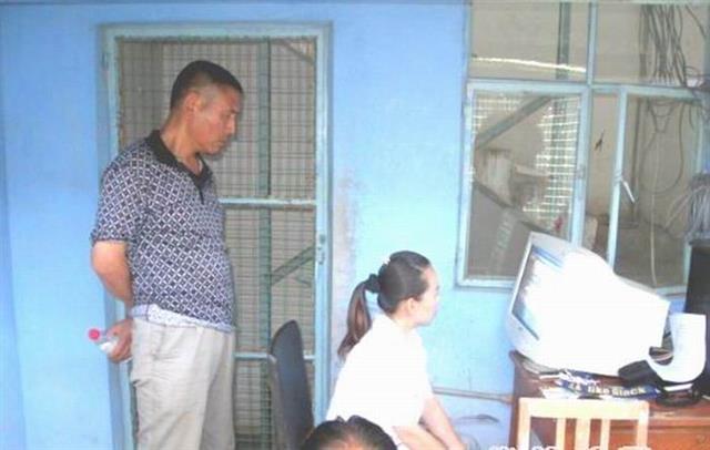 新疆得天赛鸽公棚—公棚人员在核对计算机的赛鸽足环号