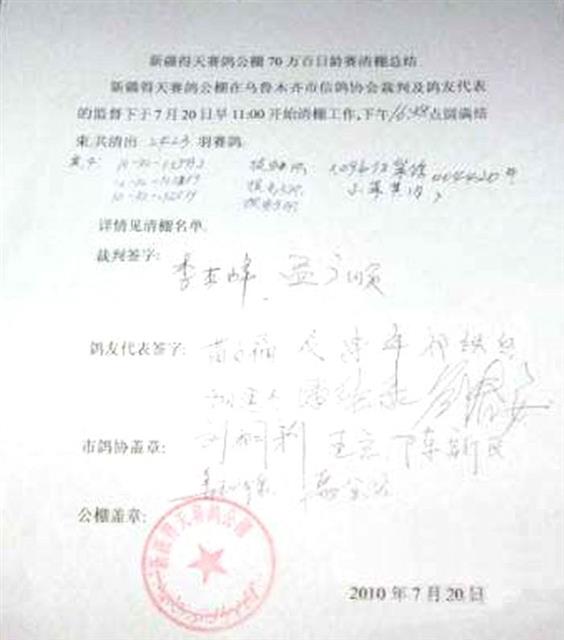 监赛单位:新疆乌鲁木齐市信鸽协会