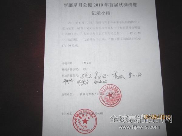 新疆星月赛鸽公棚2010年首届幼鸽公棚赛清棚现场——记录小结