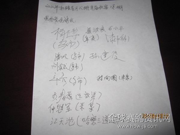 新疆星月公棚2010年秋季幼鸽赛清棚存棚名单