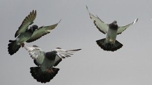 雁群在空中以V型队列快速飞翔,因为V型队列带来非常大的空气动力学方面的好处,包括下降的能量需求。另外一方面,根据本周发表在Nature杂志上的一篇最新研究论文,鸽子则是以杂乱的成群结队形式飞行---进行急剧的倾侧转弯(tight and banked turns)和快速地拍打着它们的双翼---而这似乎要比单独飞行消耗非常多的能量。这一发现表明鸽子和其他的以杂乱群体形式聚集的鸟类,成群飞行并不是出于能量效率的原因。