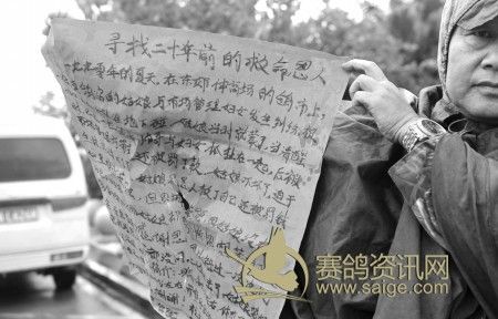 寻恩人 手写寻人启事 找21年前养鸽男子(图)