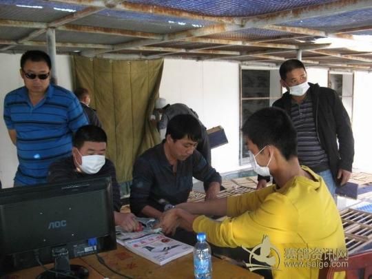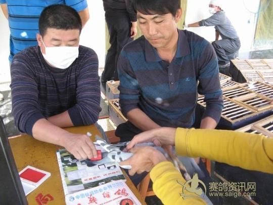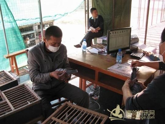新疆乌苏金三角赛鸽公棚2011年秋季决赛集鸽现场——裁判核对赛鸽信息