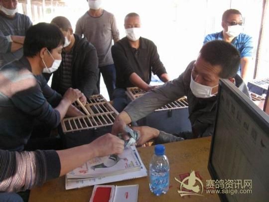 新疆乌苏金三角赛鸽公棚2011年秋季决赛集鸽现场——为了对外围打指定鸽的鸽友的公平,集鸽时遮盖了鸽主和地区信息,现场鸽友及裁判无法帮他人查看赛鸽状态