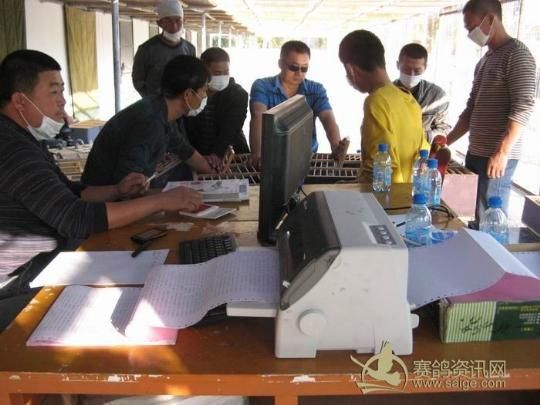 新疆乌苏金三角赛鸽公棚2011年秋季决赛集鸽现场——先进的电子扫描集鸽随机打印系统(集鸽同时多联打印)