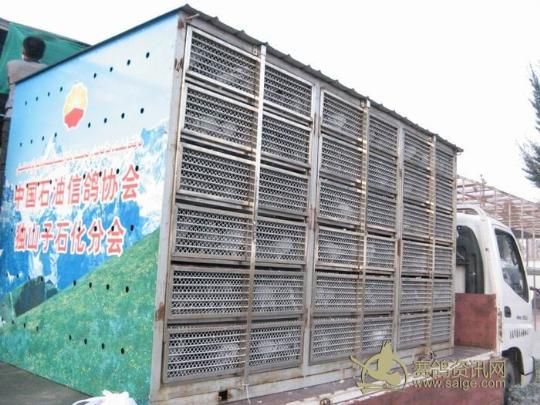 新疆乌苏金三角赛鸽公棚2011年秋季决赛集鸽现场——集鸽完成,经裁判组检查赛鸽车铅封已封