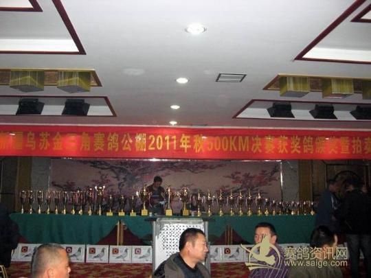 新疆乌苏金三角赛鸽公棚拍卖现场——获奖鸽