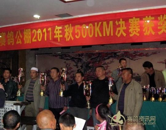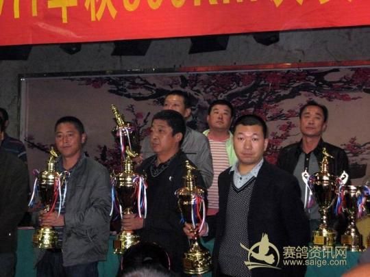新疆乌苏金三角赛鸽公棚拍卖现场——获奖鸽友(右三为海霸王孙建设)