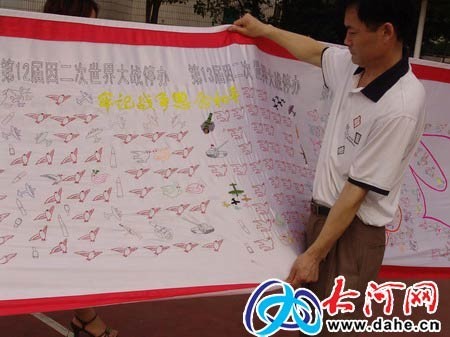 向往和平 锦绣图向世界人民真情呼唤 整个锦绣图上,有三处非常显眼,因为每支鸽子都是灰白色的、毫无生机。原因何在? 走进细观,原来是因两次世界大战而被耽搁或取消的三次奥运会,他们特地用灰色的线绣鸽子,鸽子看上去毫无生气,旁边还夹有飞机、坦克、大炮,表达了世界人民对战争的厌恶和憎恨。整幅刺绣图展开在远处观看,图上呈现出“热爱和平的人们团结起来、共同创建和谐美好地明天”的红色字样。巨图替60亿全球儿女喊出向往和平的心声,也体现12亿华夏儿女追究和谐、维护世界和平的心愿。 祖传“英”绣独具一格 李书成的家人采用“汴绣”中的“空绣”来制作整幅图,刺绣是李书成爱人家祖辈传承下来的,李书成岳母养育八双儿女,无人不会刺绣。为了奥运锦绣图的顺利完成,全家总动员,李书成90岁高龄的岳母带着老花镜在灯下认真地刺绣,每天坚持工作时间在12个小时以上。此种刺绣方法不同于传统的卞绣和苏绣。而是独具一格,他们说这是祖传“英”绣。 2008只和平鸽,绣出和谐新文化 李书成一家的执著,支持奥运的做法感动越来越多的人,受到越来越多人的关注。 李书成家是今年上街区评选的千家文明和谐家庭之一,外婆、祖母父母支持奥运的精神感动着子女们。李书成的儿子报名参加奥运志愿者,目前即将接受培训,和谐的家庭氛围让大家的奥运热情高涨。 街坊邻居更是受其感染,左邻右舍都来帮他们完成这项宏伟工程。在上街区正在开展的百家文明和谐家庭评选中,李书成所在的商界街社区居民一致认为,今年的和谐文明家庭应该是他家,因为它不但自己做得好,还引导着大家向好处做。 记者了解到,这幅图完成后,李书成一家准备再制作他们的下一个作品为2010年的南非世界杯和2012年的广州亚运会献礼。李书成准备在2007年8月8 日距奥运会开幕还有一年的日子里通过有关部门递交给国家奥委会,届时2008只鸽子将带着上街区人民的奥运热情飞入北京迎奥运。 (来源: 大河网) 编辑: 戴维
