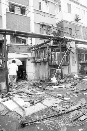 昨天中午,雨中的大風將原本安裝在南開區平湖西裡9號樓樓頂的巨型鴿棚吹落。墜落的鴿棚不僅將停在樓下的兩輛汽車砸壞,居民也無法正常進出樓門。好在當時並沒有人員從下面經過,沒有造成人員傷亡。
