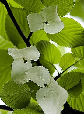 珙桐,又名鸽子树,属落叶乔木,是我国特有的珍稀植物,分布于贵州、四川、云南等地。树高15—20米,叶片广卵形,初夏开花,花形奇特,苞叶呈乳白色,成对地长在花序的基部,恰似白鸽的双翼。盛花时,满树似白鸽群聚,是世界上濒于灭绝的、非常珍贵的、我国独有的单型属植物。由于它具有极高的观赏价值以及非常罕见等特点,被我国列为国家一级重点保护树种。 珙桐苞叶里面托着圆球形的头状花序,它是由许多雄花簇拥着一朵雌花形成的,花色紫红,酷似鸽头。第一位见到珙桐的欧洲人是一位法国神父。1896年他在四川穆坪看到盛开的形桐,不禁被那一群可爱的白鸽迷住了。后来首先被引种到英国,逐渐成为世界闻名的观赏树木。外国人称它为“中国的鸽子树”。繁花时节,很像无数只白鸽落满枝头,风吹花舞,姿态动人。珙桐的果实像杏那么大,为核果,椭圆形或卵圆形,紫绿色,含油量达20%,是很好的工业原料。珙桐是珙桐属中的独苗,与能提炼抗癌药物的喜树是同科。 珙桐之所以珍贵,还在于它是植物中的“活化石”之一。早在一百万年前,珙桐也曾遍及世界。第四纪冰期的到来,使绝大多数地区的珙桐绝灭了,只有在我国贵州的梵净山、湖北的神农架、四川的峨眉山等山区中幸存的小片天然林木,繁衍至今。它们大都长在1200—2500米的山地,有些百年以上的古树高达30米,直径l米多。为了保护这稀有国宝,国家已把珙桐列为一类保护植物,并建立了专门自然保护区。 关于“鸽子树”,曾有过这样一段美丽的传说。白鸽公主私下爱上了勤劳质朴的小伙子珙桐,她把一支玉簪掰为两半,将一半作为信物送给珙桐保存。残暴的国王不同意这门亲事,他派人把珙桐抓入深山杀害。消息终于传到公主的耳里,她不顾父王的阻拦奔向深山,在珙桐坟前放声痛哭。突然,一株碧绿如玉的小树出现在公主面前,顷刻间,小树长成枝繁叶茂的大树,公主伸开两臂化作白鸽飞上树梢……。 梵净山是全世界珙桐分布最为集中的地区之一。在梵净山浩瀚的林海里,共有珙桐树11个片区,总面积达1200亩。主要分布在南线的黑湾河、铜矿厂;北线的阳雀坳、芙蓉坝,以及西线的金盏坪、沙湾、护国寺等地。在世界其他地区几乎绝种的珙桐树,在梵净山却有如此广泛的分布、众多的数量,的确是个奇迹,令人赞叹!