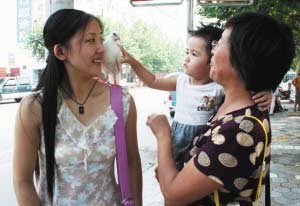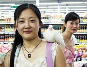 现在大伙都兴养个小猫小狗什么的,可在开发区工作的女青年黄明珠却与众不同,她的宠物是只鸽子。这只鸽子天天呆在她肩头,跟她逛超市、坐公交车,而且这只鸽子还不是养的,是自己飞来的,你说稀罕不稀罕? 白鸽紧跟女青年 “我在官厅市场附近看到一名女青年肩头上落着一只鸽子。”昨天,开发区市民李女士拨打早报热线说,无论女青年坐公交车还是逛超市,鸽子一直乖乖地呆在肩头跟着她。昨天上午,记者在官厅小区找到了这名女青年,她左肩头落着一只小白鸽,时卧时站。女青年自我介绍说,她叫黄明珠,是黑龙江佳木斯人,刚来开发区两个月,在一家酒店客房部工作。 伤好后白鸽不愿走 “大约在20天前,这只鸽子飞到我们酒店17楼来,同事发现它时,它浑身是血,左侧翅膀受伤了。”黄明珠告诉记者,她是后来在酒店库房看到这只鸽子的,当时,鸽子见了她就往她身上飞。起初她还有些害怕,后来慢慢地发现鸽子是想亲近她。“我从来没养过鸽子,但我很喜欢小动物。”黄明珠说,她经常跑到库房给小白鸽喂食吃,一来二去,和小白鸽产生了友谊。 “8天前,看小白鸽的伤势好得差不多了,我们打算将小白鸽放飞,刚把它扔到天上,它就飞到我肩膀上了。”黄明珠说,就这样她带着小白鸽回家了。白天上班前,她给小白鸽准备好吃的放在床上,晚上小白鸽就在橱顶上休息睡觉。 招来路人羡慕目光 “我平时下班回来或休息时就带小白鸽上街逛逛,它很招人喜欢。”昨天上午,记者跟黄明珠在街上转了一圈,小鸽子一直安静地呆在她肩头,无论是坐公交车还是逛超市,一直形影不离。 “你是不是用绳绑着鸽子脚?”刚开始,有市民发出质疑,黄明珠就让他们仔细查看。许多市民上前抚摸小白鸽,小白鸽也并不害怕,许多市民羡慕地看着她们俩。 “一切顺其自然吧,它要是想飞走,寻找新的主人,我不会强留它的。”在谈到是否会一直将小鸽子留在身边时,黄明珠告诉记者,她和小鸽子既是朋友又是亲人,她会好好照顾小鸽子的。刘海龙 摄影报道 (小葛摘自青岛新闻网-青岛早报)