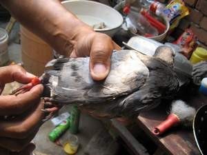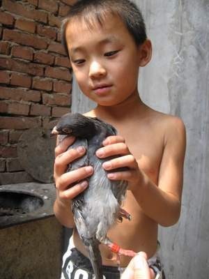 "军鸽"脚上有红色铝塑环。 大约半月前,一只“昆明军鸽”飞落大名县龙王庙镇菜市场,“再也不走了”。目前,在该菜市场卖菜的马先生一家的照料下,这只“军鸽”不愁吃喝,状况良好。 8月14日上午,记者来到大名县龙王庙镇菜市场,在马先生的家中看到了那只“军鸽”。从外表看,这只“军鸽”与其他鸽子并无多大区别,羽毛瓦灰色,足部呈红色,除了体型相对较小外,其足部上方套着一只红色的铝塑环,环上注有“昆明军鸽”字样,写有日期,刻有一枚五角星军徽,并有数字编号。 马先生说,大约半月前的一天,这只“军鸽”扑棱着翅膀落在家门口,怎么轰也轰不走,又比较怕人,即便喂它东西吃,也是见人就躲得远远的,不敢靠前。 马先生说,实在轰不走了,家里便将其养起来,平日喂些麦子、玉米之类的食物,这几天比较热,家人也会喂它水喝,时间一长,它跟家人也都熟悉了,可是还是一直不飞走。 为了使它活动自由一些,马先生一家并没有将其用笼子圈起来,而是任其在院里又飞又跑。 但令人遗憾的是,起初它来到马先生家时,马先生并没有看到这只鸽子上的铝塑环,从而也不清楚它的重要性,而是视其为一只普通的“笨鸽子”,于是拿起剪刀,将鸽子的翅膀稍微剪了一圈。这样一来,在一定程度上影响了“军鸽”的飞行。说到这儿,马先生表示甚为惋惜,并为自己的行为自责不已。 马先生表示,希望有关部门来家里鉴定一下,看一看是否确实是军鸽。倘若得到确认,还望得到及时处理,使它返回自己的家园。 ◎相关链接 昆明军鸽 据媒体报道,“昆明军鸽”不是普通的信鸽,它们飞行速度很快且训练有素。昆明军鸽队由我国著名养鸽家陈文广先生一手创建,在20世纪70年代,昆明军鸽队的50只军鸽曾经参加过氢弹试验。如今昆明军鸽队已经繁育和训练出了许多优秀的军鸽品系,这些鸽子算得上是军鸽队的一批巨大财富。资料显示,早在二战时期,由美国陈纳德将军率领的空军飞虎队,在云南滇缅边界参加抗日作战时,把大批经过筛选的优秀军鸽带到了云南,作为当时的通信工具。二战结束后,飞虎队从昆明撤离时把大部分鸽子留在了昆明。