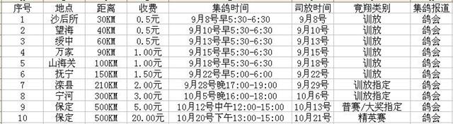 2007年秋葫芦岛市火车头信鸽协会训放比赛时间表