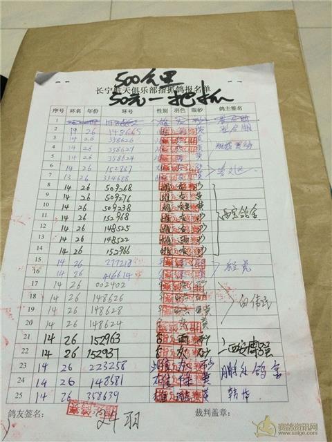 2014年秋季500公里指抓清单