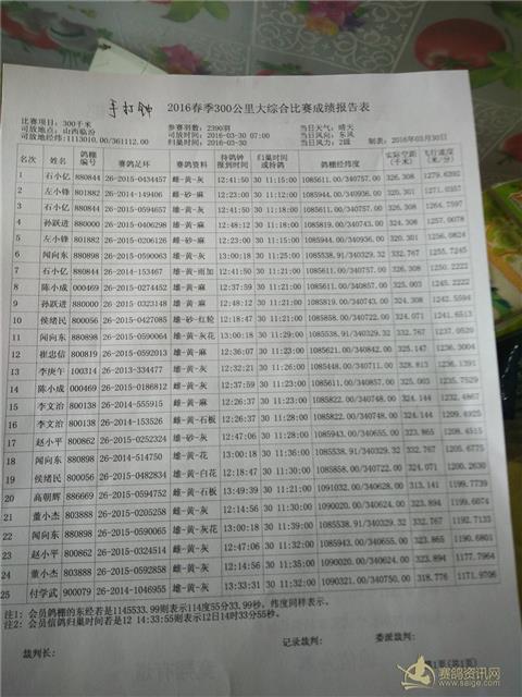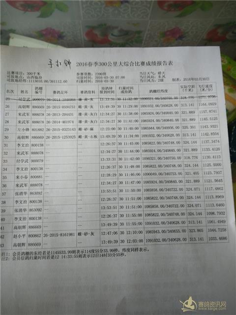 300公里手打钟成绩单
