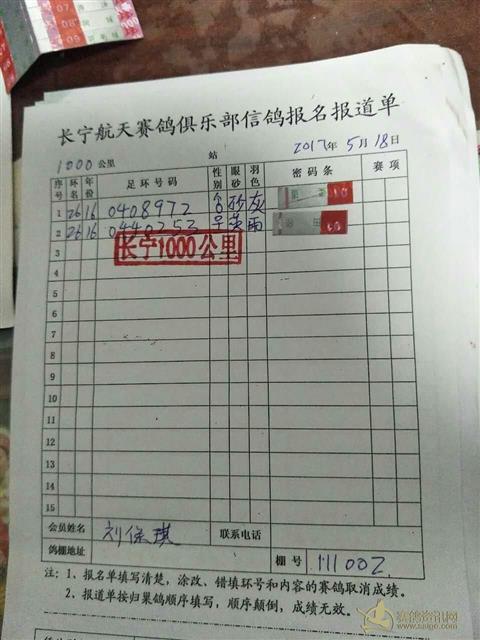1000公里集鸽清单及毁章图片