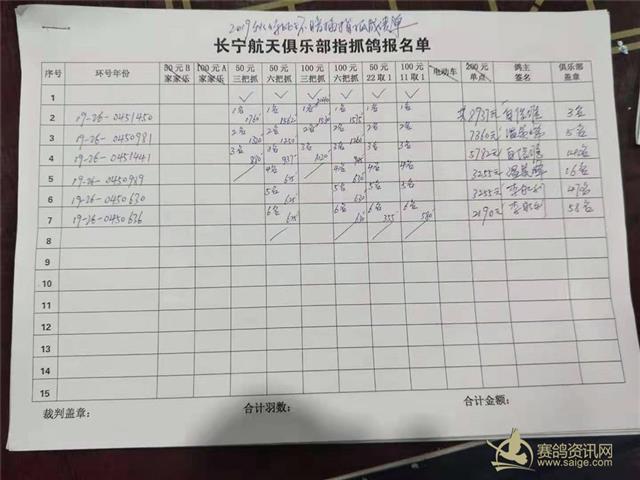 如有异议,三日内与俱乐部联系,三日过后,按此表发放奖金 长宁航天赛鸽俱乐部 2019年10月27日