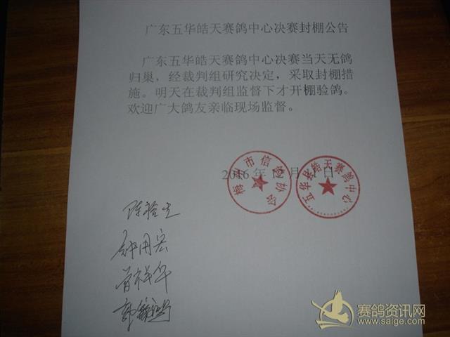 广东五华皓天赛鸽中心封棚公告