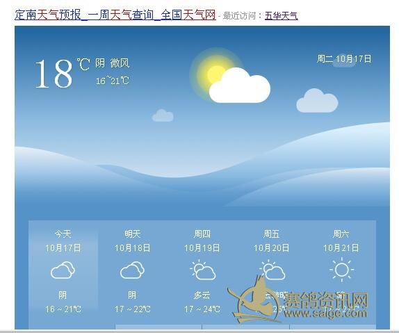 根据司放地天气情况,经研究决定第十二站定南站18号晚集鸽,19号早上放出。届时网上直播。定南外围指定时间到18号下午16:30分结束。望鸽友相互告知,谢谢! 天气图如下: