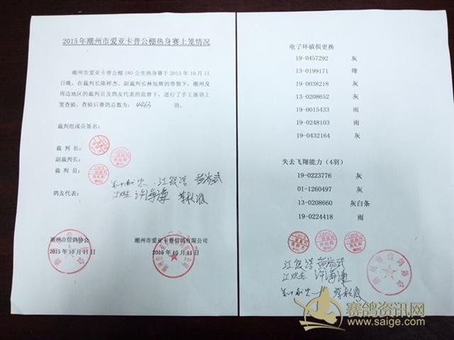 2015年潮州市爱亚卡普公棚180公里热身赛上笼过程(图片2)