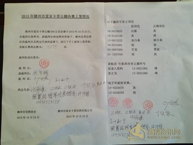 2015年潮州爱亚卡普公棚决赛上笼照片2