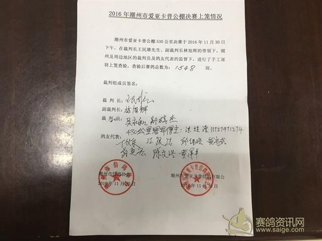 2016年潮州爱亚卡普公棚第三关(530公里)决赛上笼照片