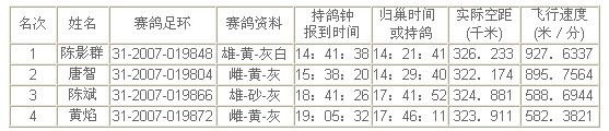 (皇马团年杯)竞翔成绩报告表(单关)