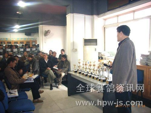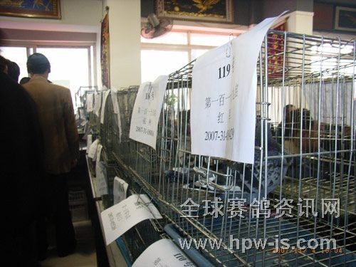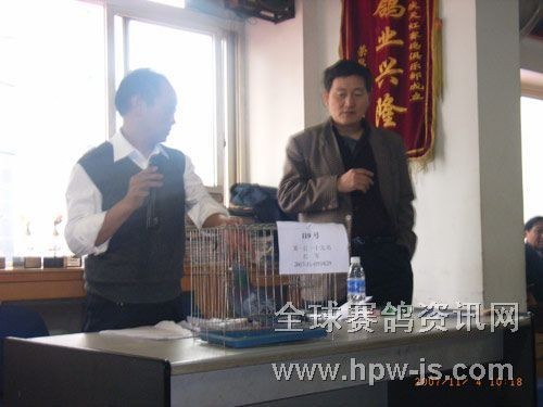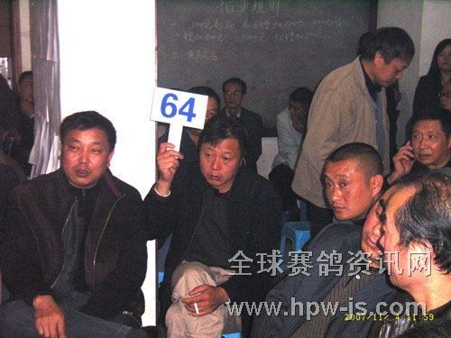 时间:2007年11月4日星期日早上9点地点:江北区天虹赛鸽俱乐部内今天是重庆市天虹公棚的好日子,秋季大赛的精英们,在公棚共同生活了大半年的日子,今天也将分道扬镳,有的找到了新家,有的回到了故里,更多的赛鸽在这之前选择了自由。上午9点不到,平时宽敞的俱乐部大厅,已是人潮涌动,这都与公棚的公开、公平、公正的原则是分不开的,由于本次比赛透明度高,所以得到了广大鸽友的认可。70%以上的赛鸽都成功拍出,而且价格不断创出新高。本次参加拍卖的赛鸽一共119羽,拍卖价格在5000元以上的有10多羽,多数价格在1000-3000元不等,最高拍卖价的一羽赛鸽并非冠、亚、季军,也不是综合鸽王的前三名,而是“冲天雄鹰”选送,决赛排在第八名,环号2007-31-033557的一羽灰鸽,在起拍价500元的基础上,13号鸽友第一次举牌就叫价2000元,随后的加价幅度不断攀升,在一番激烈的争夺后,最终价格锁定在8000元。冠、亚、季军,综合鸽王前三名的最终拍卖价格都在4000-6000元之间。下面是拍卖现场发回的图片
