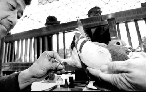 周文告诉记者,参赛者所缴纳的千元参赛费多是用于安装防止作弊现象的电子芯片。原来比赛是采用电子钟计分,现在已经转为电脑联网全程监控,每只鸽子都会配一个电子脚环,这种脚环设置了电子芯片。比赛开始前,将“选手鸽”的信息传入电子信息扫描系统,由其对鸽子飞行时间进行监测。高科技的装备在很大程度上防止了作弊现象的发生,但也增加了鸽主的参赛成本。
