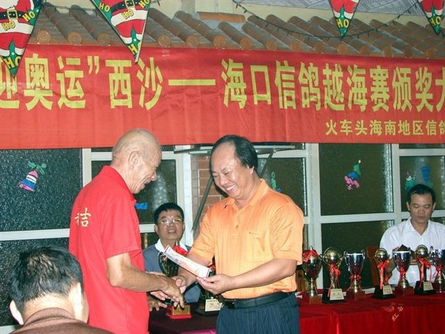 火车头海南信鸽协会西沙群岛-海口越海赛颁奖现场(图)