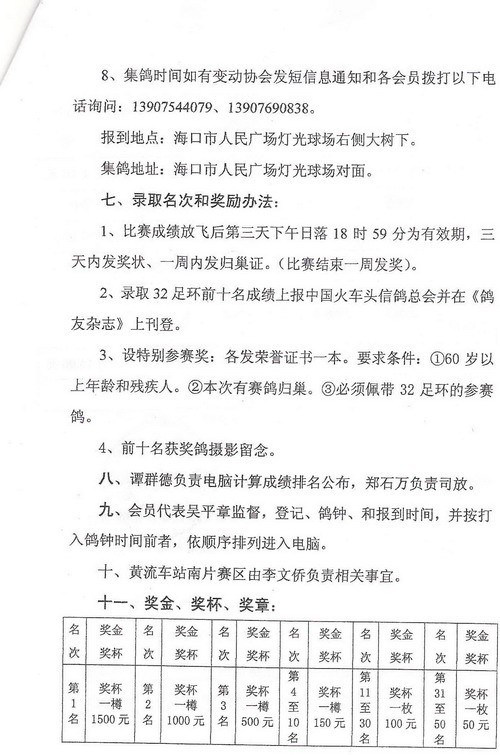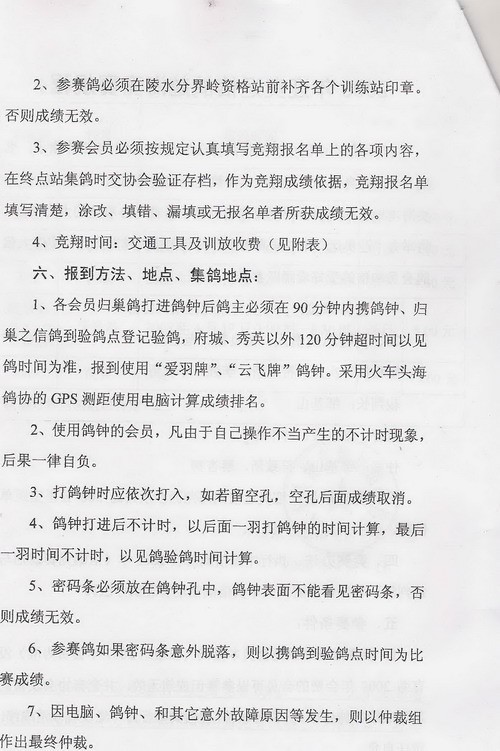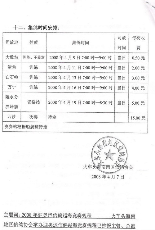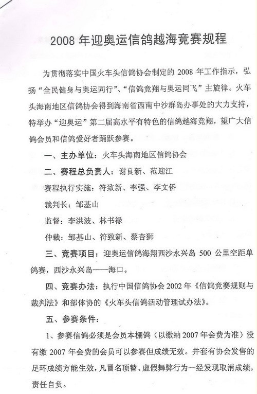 迎奥运信鸽越海竞赛规程