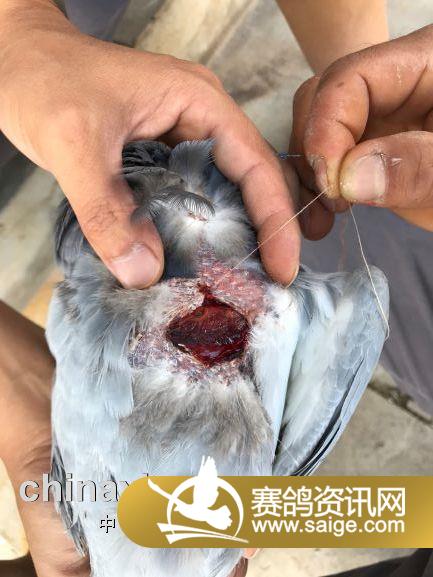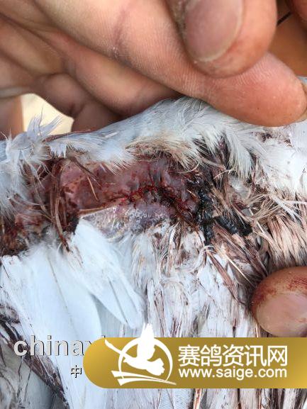 以下三羽赛鸽训放归巢途中不幸被鹰抓伤