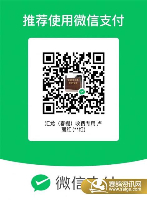 请扫描以上二维码,填写支付金额,付款成功后,微信联系截图账单详情发给汇龙秋棚公棚电脑员并填写清楚所缴费鸽主参赛名,缴费羽数等信息。