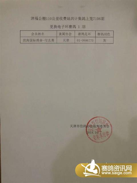 津福公棚110公里收费站集鸽上笼清单 津福公棚110公里收费站集鸽为人工逐羽扫描,共计上笼7106羽。