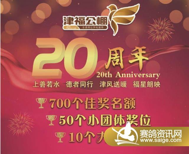为答谢广大鸽友对津福公棚一直以来的支持与信赖,值此二十周年之际,特加设幸运奖601-700名。凡交纳预定金(8000元)的鸽友名下所有赛鸽均可参加津福公棚2020赛事幸运奖。