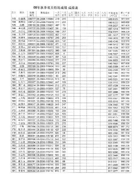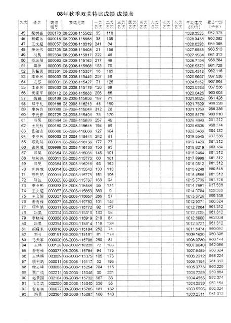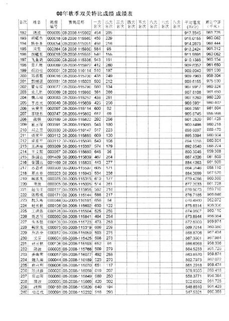 2008年双关成绩表
