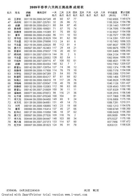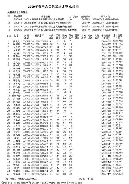 2009年春季平房俱乐部六关挑战赛四关综合成绩