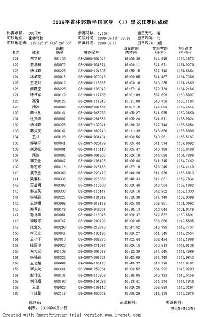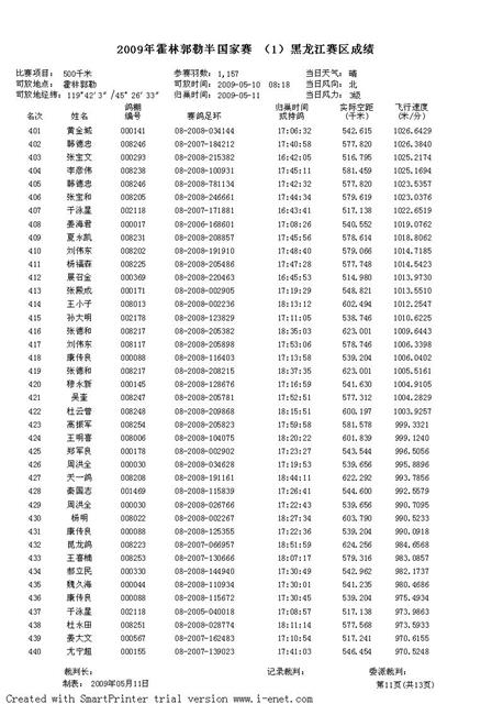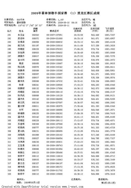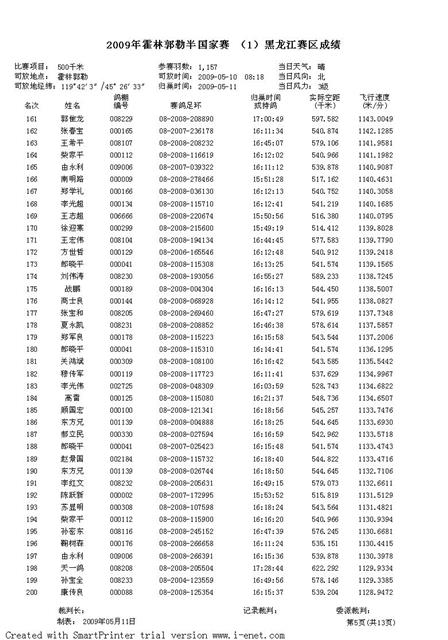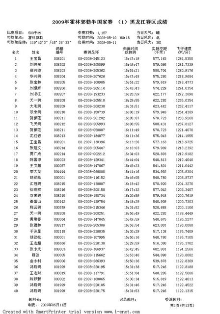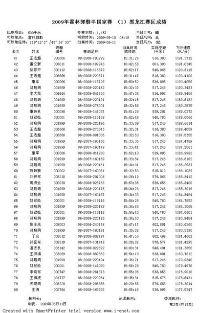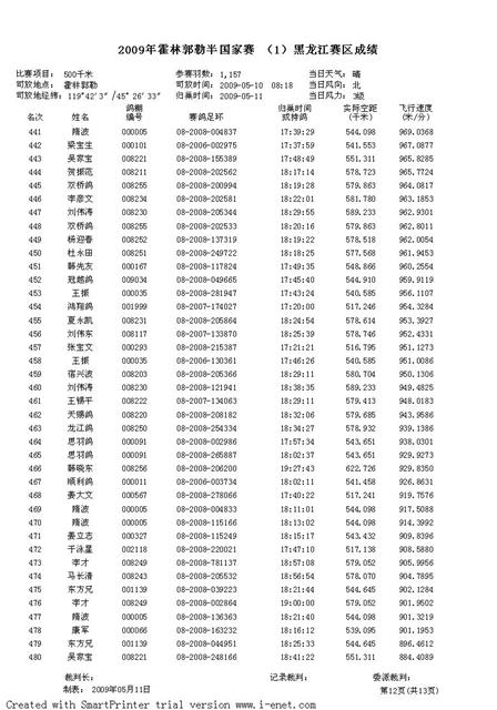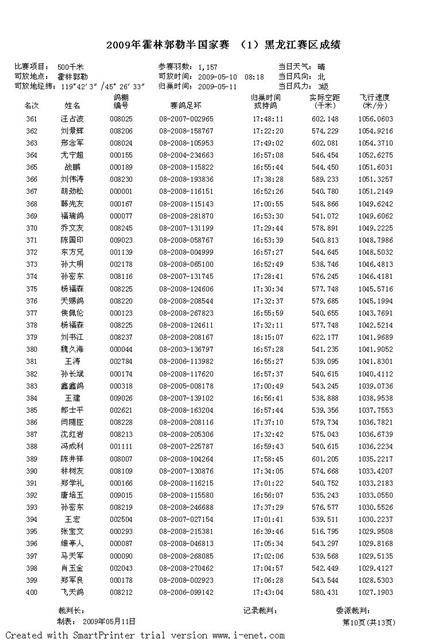 2009年霍林郭勒半国家赛 (1)黑龙江赛区成绩