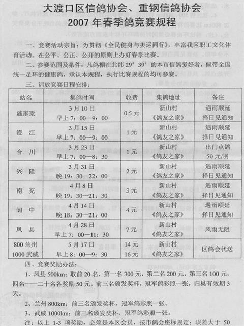重庆大渡口信鸽协会2007年春季竞翔规程图片