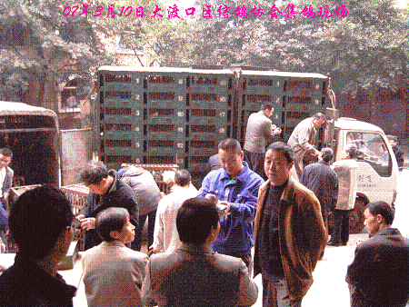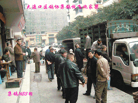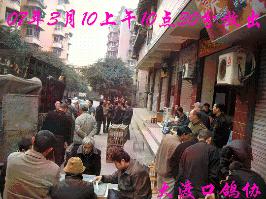 重庆大渡口区信鸽协会春训施家梁集鸽现场图(转发)今日快讯:重庆大渡口区信鸽协会2007年春训今日拉开序幕。3月10日早上7~9时集鸽。集鸽地点;友谊旅馆附近茶园司放地:施家梁子 空距;30公里当天天气:阴司放时间:2007年3月10 日10时30分 经度:29 °:40 ”: 纬度:106°:30 ”:当天风向:北风;风力:一级参赛羽数:1653羽