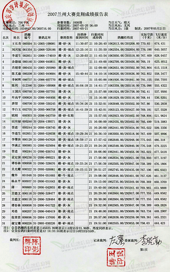 重庆江北区信鸽协会转贴 2007年5月22日